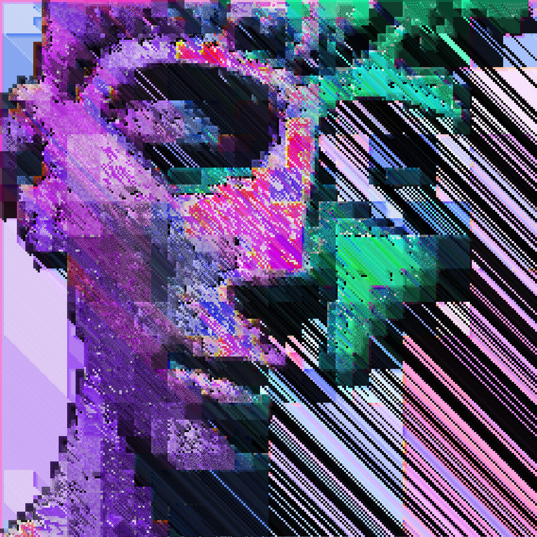 Glitch art, pixel art, custom visuals exploring patterns, error, and digital decay.
